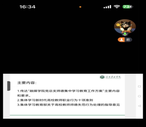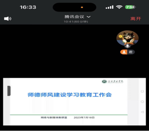 为深入学习研讨习近平总书记关于教育的重要论述,加强改进新时代师德师风建设意见,探索新时期做好教师师德师风建设工作的新模式、新方法、新路径。7月18日下午,网络与新媒体教研室开展了师德师风建设学习教育专题教研活动。