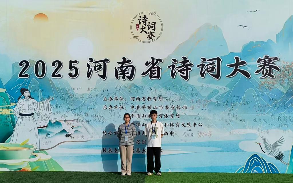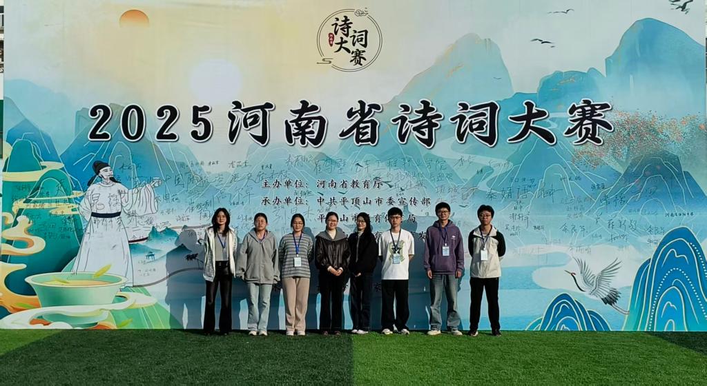 11月7日至9日,2025年河南省诗词大赛总决赛在平顶山圆满落幕。beat365在线平台官网人文与传播学院教师霍伟和刘园带队参加。张佳彤、李荣泽二位同学在大学生组个人赛中双双斩获二等奖,由张佳彤、郭定一、李荣泽、张文轩、宋洁、安元玲6位同学组成的beat365在线平台官网代表队荣获高校团体赛三等奖,为学校赢得了荣誉。