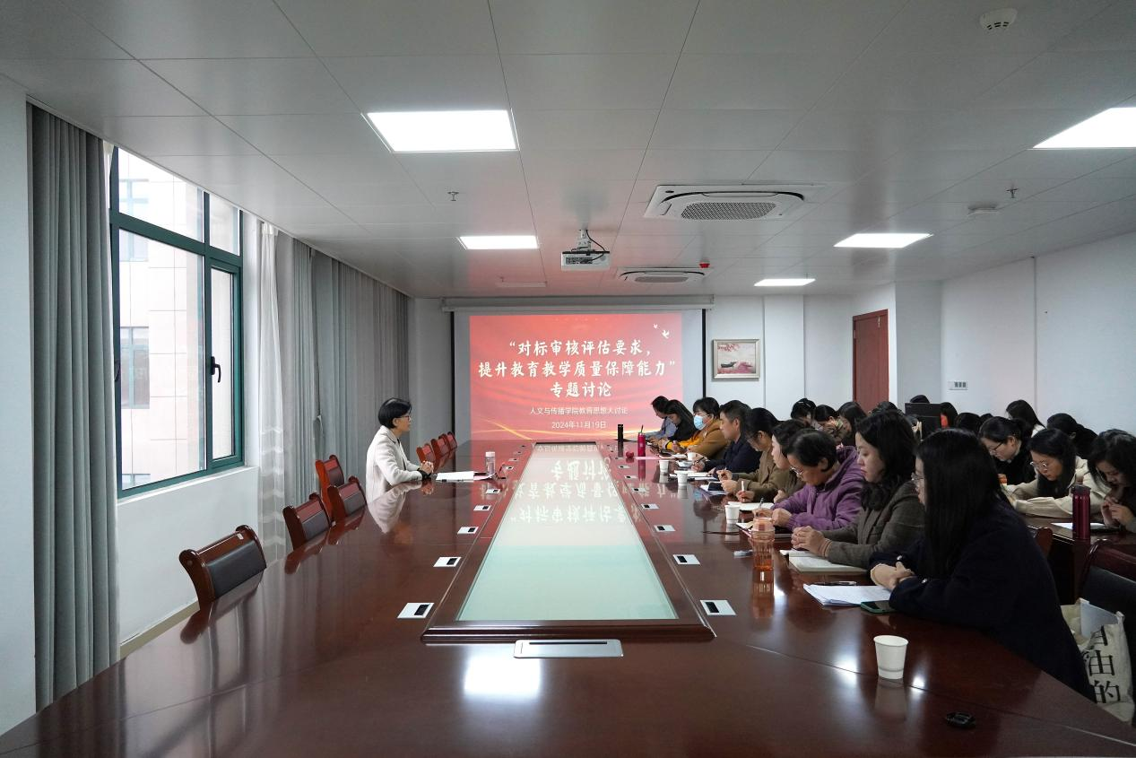 为深入贯彻落实学校教育思想大讨论安排部署,结合学院教育思想大讨论学习讨论活动安排,11月19日下午,人文与传播学院开展“对标审核评估要求,提升教育教学质量保障能力”专题讨论会,本次会议特别邀请校党委副书记王万玲进行专题指导,学院全体教师参加会议,会议由党总支书记李华清主持。