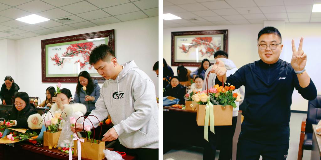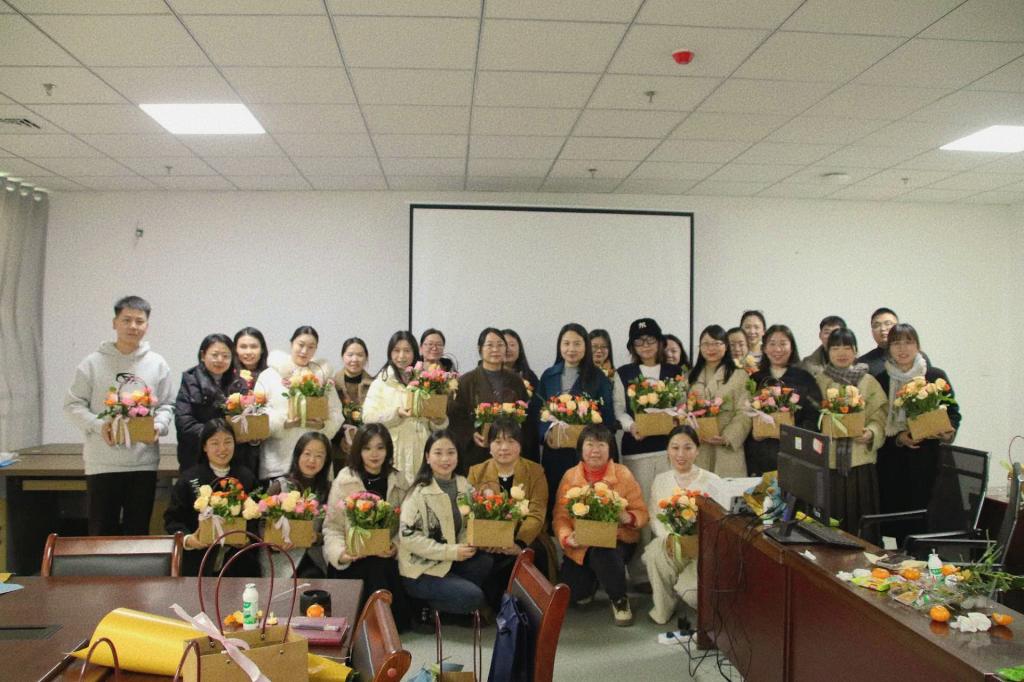 以花为媒,品茗雅叙。在馥郁的氛围中,教职工们围坐一隅、静享茶歇,交流工作趣事、生活乐事。活动尾声,大家手捧鲜花,合影留念,记录美好瞬间。