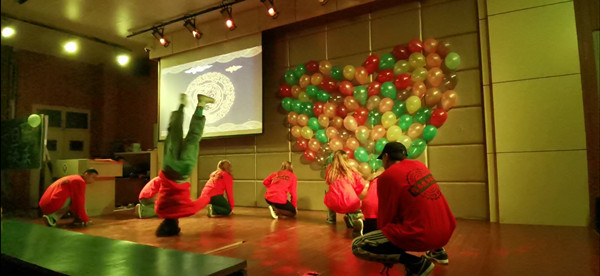 18时30分,街舞社团同学的一段名为《喜上加喜》的舞蹈引爆全场,晚会正式开始。整场晚会的节目内容形式多样,精彩纷呈,尽显两院风采。