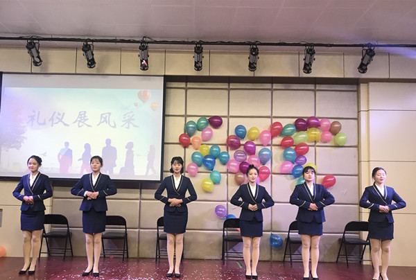 我院礼仪队也应邀参与本场联欢会。整齐的队列、端庄的姿态、规范划一的礼仪动作展现出我院学子的青春风采,《礼仪操》是我院的传统保留节目,自首演以来,每次的展演都会在师生中刮起最炫礼仪风。