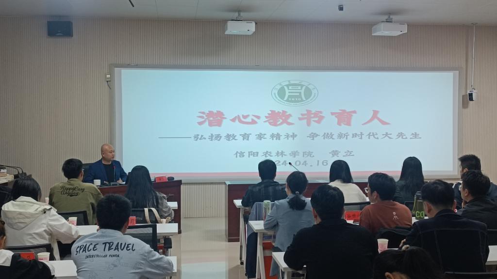 4月16日下午,副校长黄立在教师发展中心多功能报告厅以“潜心教书育人——弘扬教育家精神 争做时代大先生”为题,为2024年全体新入职教师作报告,教师发展中心等相关部门负责同志及49位新入职教师参加此次报告会。会议由人事处处长、党委教师工作部部长、教师发展中心主任赵师成主持。