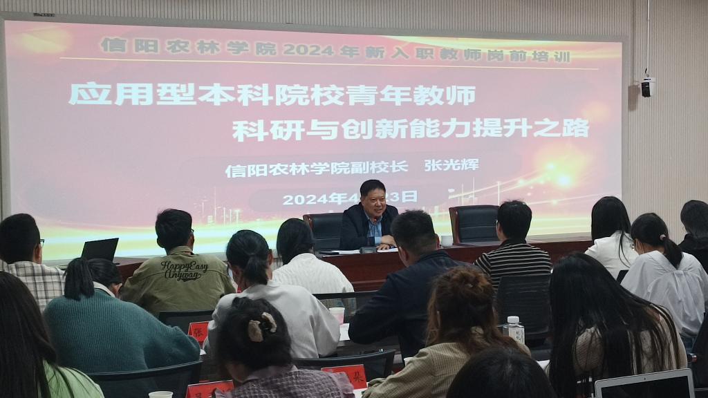 4月16日下午,副校长张光辉在教师发展中心多功能报告厅以“应用型本科院校青年教师 科研与创新能力提升之路”为题,为2024年全体新入职教师作报告,教师发展中心等相关部门负责同志及49位新入职教师参加此次报告会。会议由党委教师工作部部长、人事处处长、教师发展中心主任赵师成主持。