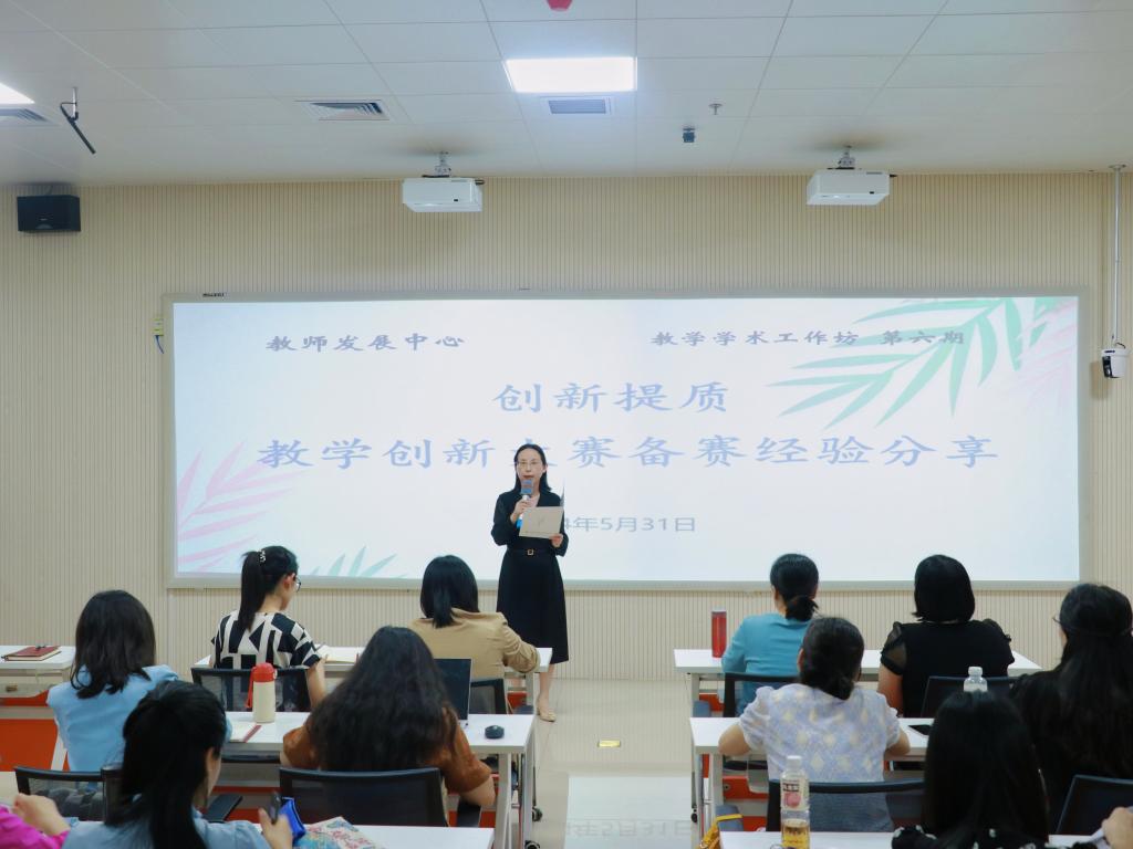 教师发展中心副主任邵颖、教务处副处长商宪丽、教学评估与质量管理中心主任唐芳也纷纷发表讲话,他们均高度评价了两位教师的分享,一致表示教师发展中心、教务处和教学评估与质量管理中心将持续关注教师教学能力的提升和课堂教学创新,助力教师们在未来的比赛中取得更优异成绩。(撰稿/邵颖 任峰)