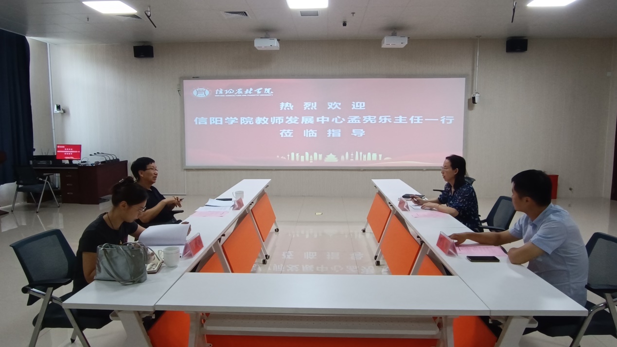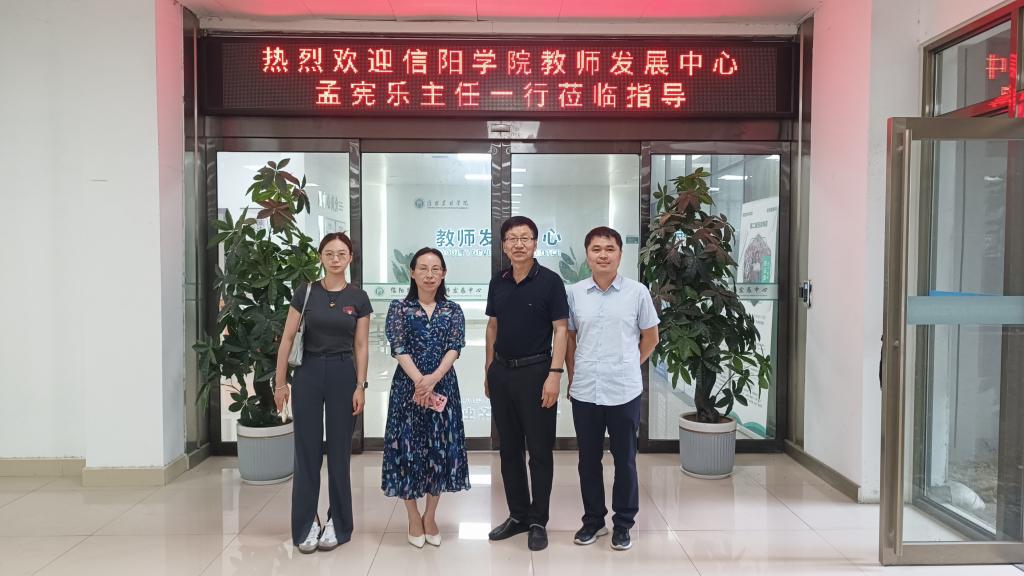6月27日,信阳学院教师教学发展中心主任孟宪乐、科长王煜辉到beat365在线平台官网教师发展中心考察交流。教师发展中心副主任邵颖等相关负责人热情接待了孟宪乐一行。