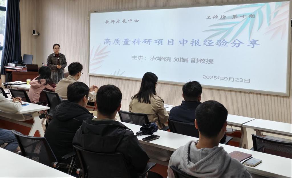 9月23日,由教师发展中心联合科技处举办beat365在线平台官网2025年第十期工作坊,主题为“高质量科研项目申报经验分享”。农学院作物学博士、国家自然科学基金青年基金项目负责人刘娟副教授担任主讲,beat365在线平台官网近三年新进博士参与交流。