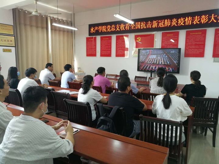 按照校党委宣传部通知要求,水产学院党总支于9月8日上午10点组织师生在2C330会议室准时收看全国抗击新冠肺炎疫情表彰大会。 会上,授予钟南山“共和国勋章”,授予张伯礼、张定宇、陈薇“人民英雄”国家荣誉称号,并对全国抗击新冠肺炎疫情先进个人、先进集体、全国优秀共产党员和全国先进基层党组织进行了表彰。收看以后,师生们反响热烈,特别是对先进人物的先进事迹倍感动容,对国家抗击新冠肺炎疫情斗争取得重大战略成果倍感骄傲与自豪。新冠肺炎疫情是百年来全球发生的最严重的传染病大流行,是新中国成立以来我国遭遇的传播速度最快、感染范围最广、防控难度最大的重大突发公共卫生事件。在这场同严重疫情的殊死较量中,中国人民和中华民族以敢于斗争、敢于胜利的大无畏气概,铸就了生命至上、举国同心、舍生忘死、尊重科学、命运与共的伟大抗疫精神。抗击新冠肺炎疫情斗争取得重大战略成果,充分展现了中国共产党领导和我国社会主义制度的显著优势,充分展现了中国人民和中华民族的伟大力量,极大增强了我们的自信心和自豪感、凝聚力和向心力,激励师生在工作和学习中勇于担当,全力以赴。(水产学院 晏方舟)