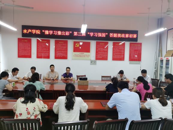 为深入贯彻落实习近平总书记关于加强学习、建设学习大国重要指示精神,建好、办好、用好“学习强国”学习平台进一步提高广大党员干部学习积极性,按照省委、市委宣传部和学校党委的要求, 7月17日上午,水产学院党总支在院会议室2C330开展“豫学习豫出彩”——第二届“学习强国”答题挑战赛初赛。