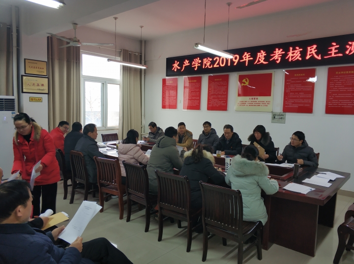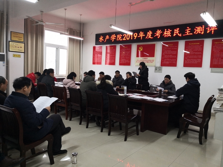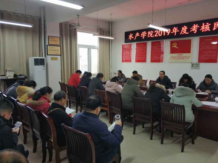 2020年1月13日,水产学院党总支在院会议室2C330召开2019年度考核民主测评工作会,水产学院25名教职工参会(1人请事假、1人休产假、1人读博)。会议由水产学院党总支书记郭旭升主持。