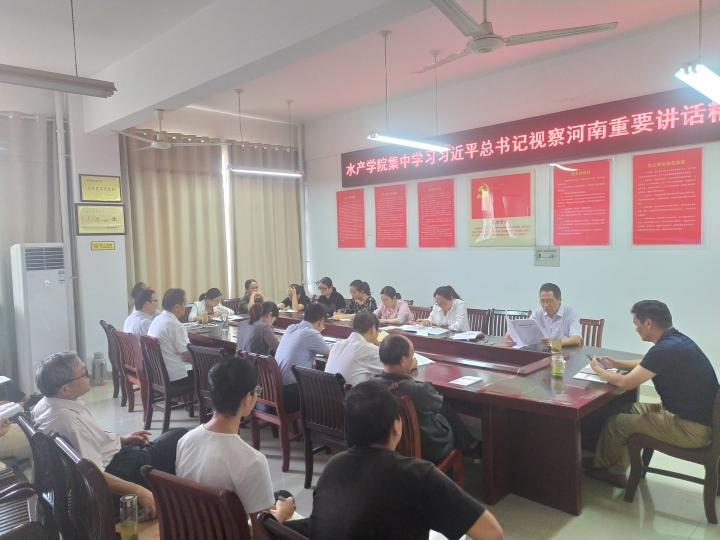 9月24日下午,水产学院在2C330召开全体教职工会议,传达学习习近平总书记视察河南重要讲话精神。会议由水产学院党总支书记郭旭升主持。