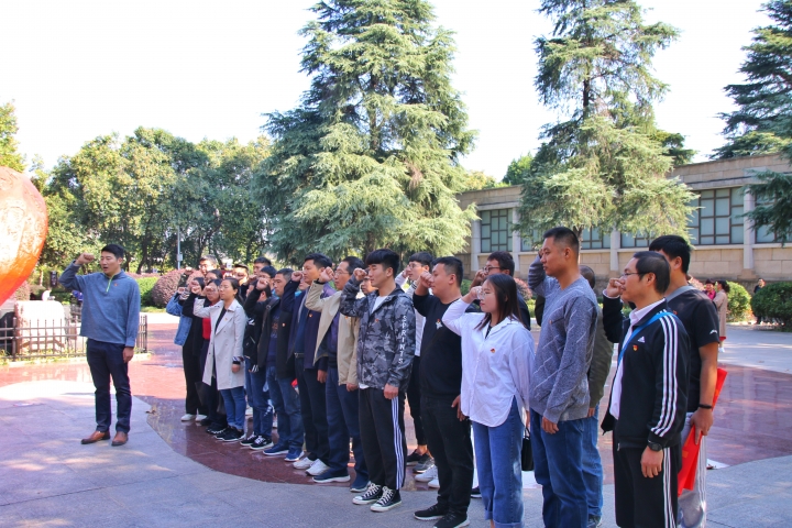 在新县鄂豫皖苏区首府烈士陵园,全体师生党员认真聆听讲解员对过去那段峥嵘革命岁月的讲解,瞻仰了革命烈士纪念碑。在英烈广场,全体党员在水产养殖与水族科学党支部书记冯德祥的领誓下重温了入党誓词,接受心灵的净化和洗礼,再次铭记作为一名共产党员的神圣职责和艰巨任务。