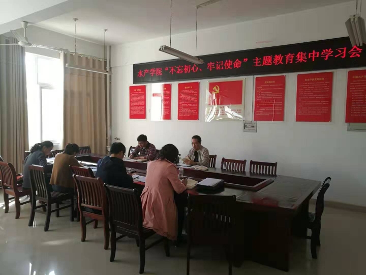 根据学院“不忘初心、牢记使命”主题教育安排,10月30日下午,水产学院党总支在党员活动室召开“不忘初心、牢记使命”主题教育集中学习会。水产学院领导班子、中层副职考察对象、各支部书记参加了会议。会议由水产学院党总支书记郭旭升同志主持。
