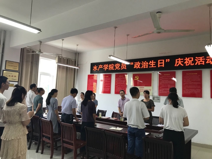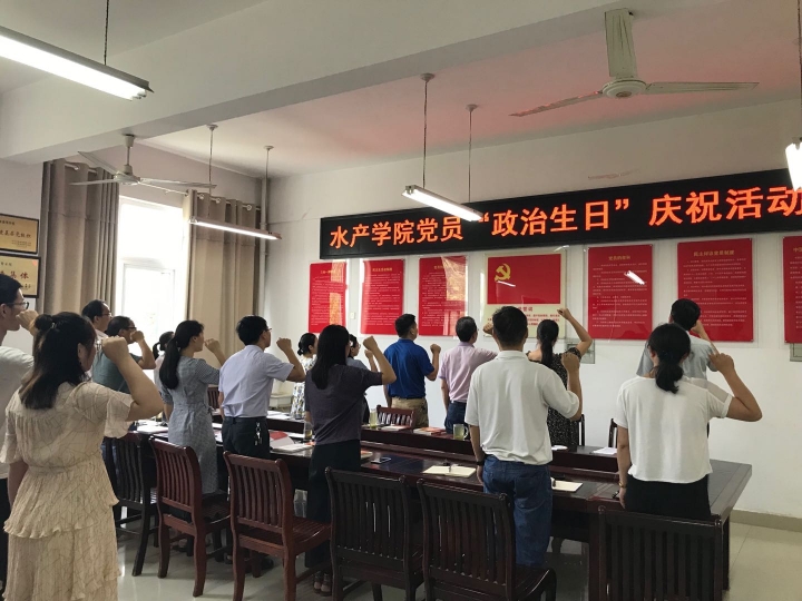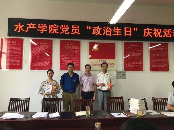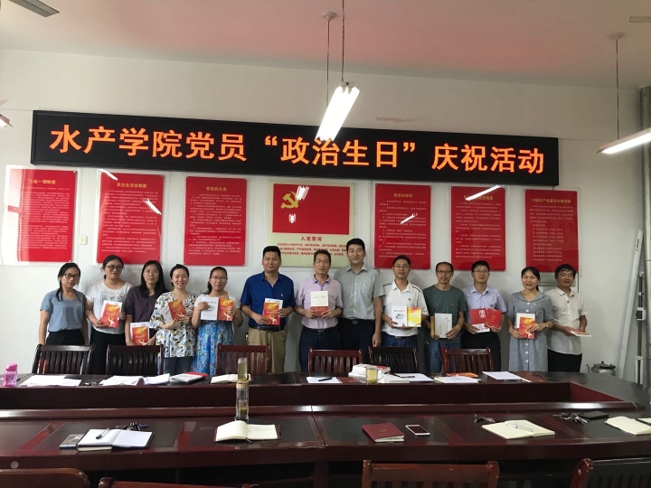 6月25日下午,水产学院党总支在党员活动室开展了以“牢记政治生日 践行党的宗旨”为主题的党员“政治生日”庆祝活动,为第二季度入党的18名师生党员同志及党龄“逢十”的2名党员同志集体庆祝“政治生日”。全院在校师生党员参会。活动由水产学院党总支组织员黄光玲主持。
