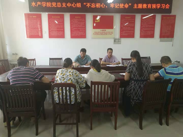 按照学校《关于开展“不忘初心、牢记使命”主题教育预学习的通知》要求,9月2日下午,水产学院党总支在党员活动室召开中心组(扩大)学习会,开展“不忘初心、牢记使命”主题教育预学习。学院总支委员、中层副职人选考察对象、各支部书记参加学习。会议由院党总支书记郭旭升主持。