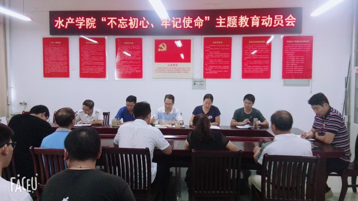 9月12日下午,水产学院在党员活动室召开“不忘初心、牢记使命”主题教育动员会。学院党总支委员、各支部书记以及全体在校师生党员参加会议。会议由水产学院党总支书记郭旭升主持。