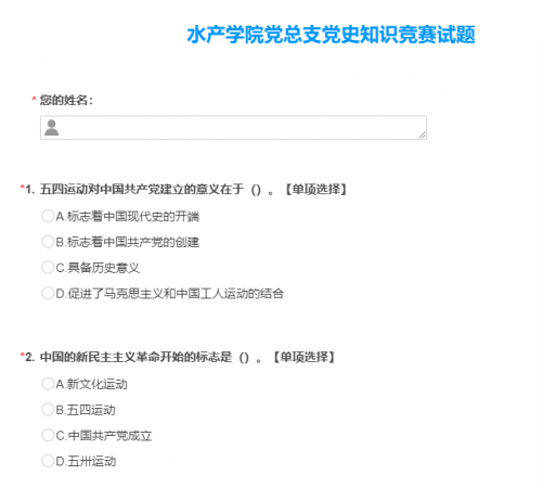 为扎实开展党史学习教育,增强学习效果,近日,水产学院党总支开展了线上“党史知识竞答赛”活动。总支精心准备了党史知识竞答试卷,试卷共100题,全院教职工通过线上扫码答题的方式,积极参与比赛。竞答赛共评出一等奖1名,二等奖2名,三等奖3名。4月27日下午,总支为获奖的老师及所有参与的老师颁发了奖品。此次线上“党史知识竞答赛”活动激发了教职工学习党史的热情,以赛代学,取得了良好的效果。(水产学院 晏方舟)