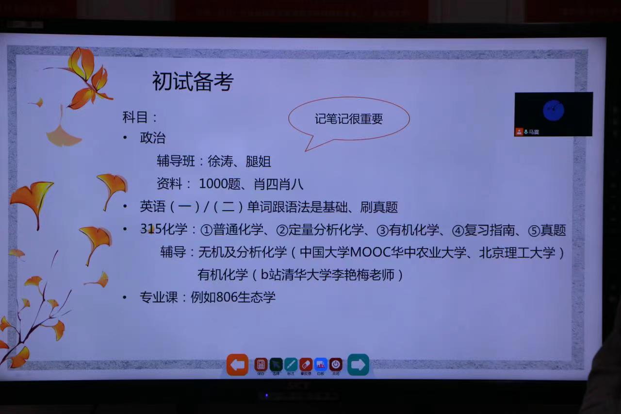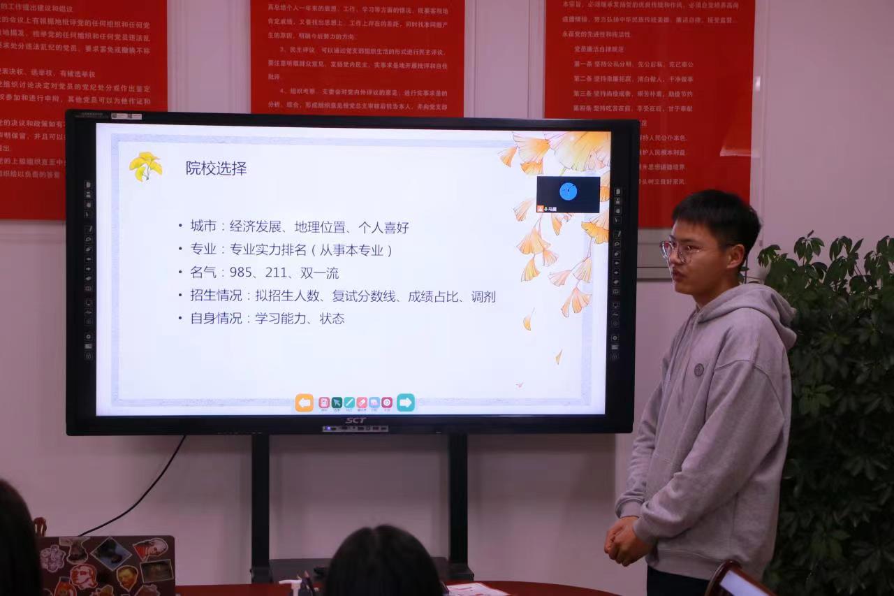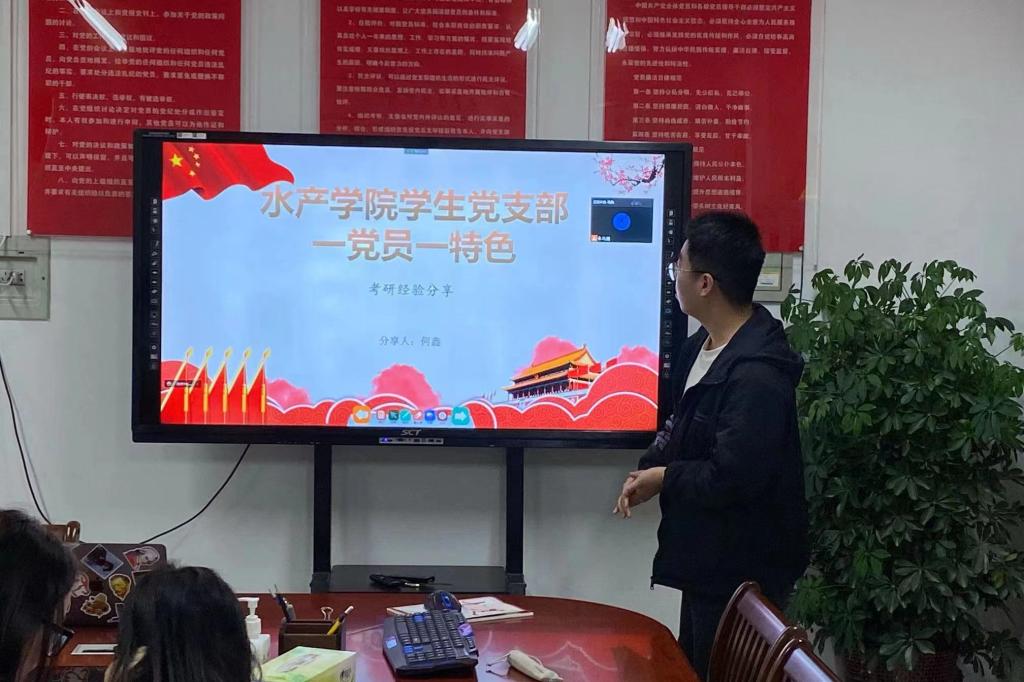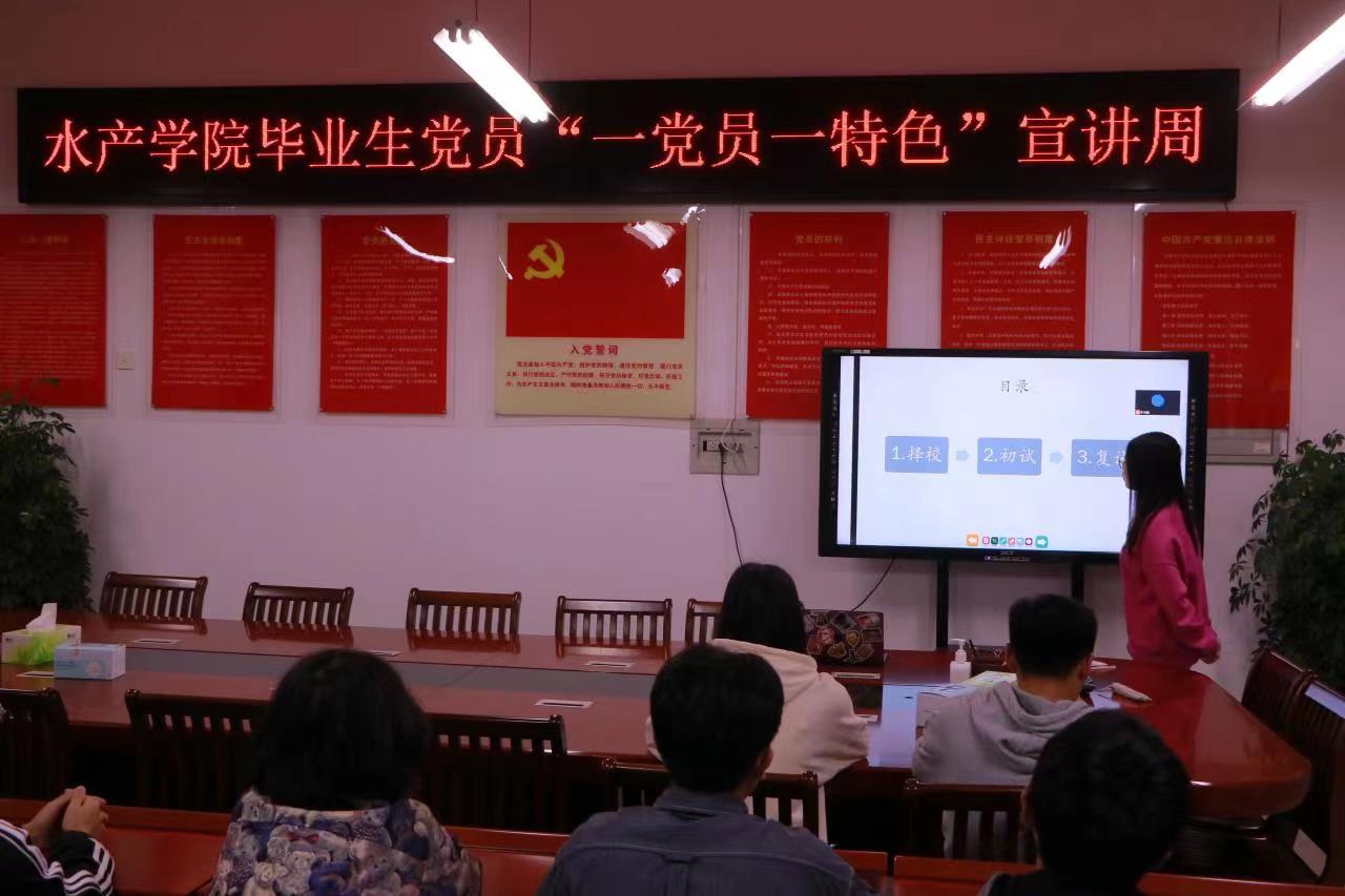 4月29日晚7点,毕业生党员“一党员一特色”宣讲周系列活动第二场——“考研经验分享会”在2c330党员活动室和腾讯会议同时举行,水产学院2019级、2020级、2021级学生参加了本次活动。