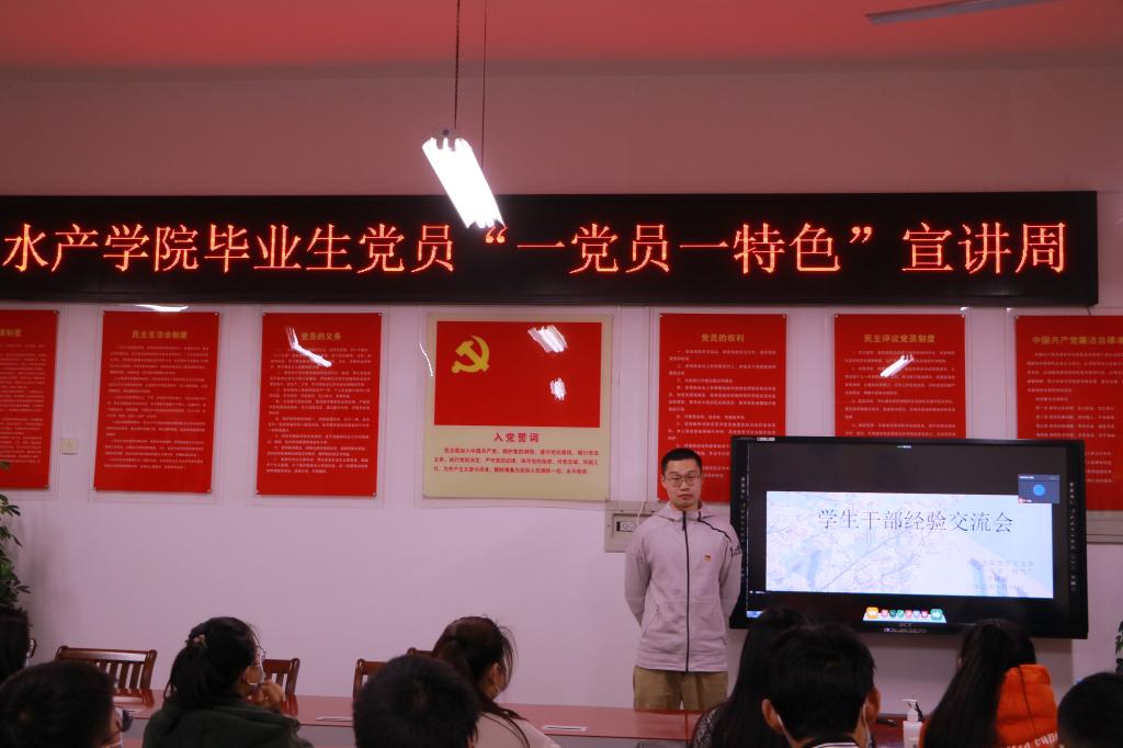 4月30日晚7点,宣讲周系列活动第三场——“学生干部经验交流会”在2c330党员活动室和腾讯会议同时举行,水产学院2020级、2021级全体学生参加了本次活动。