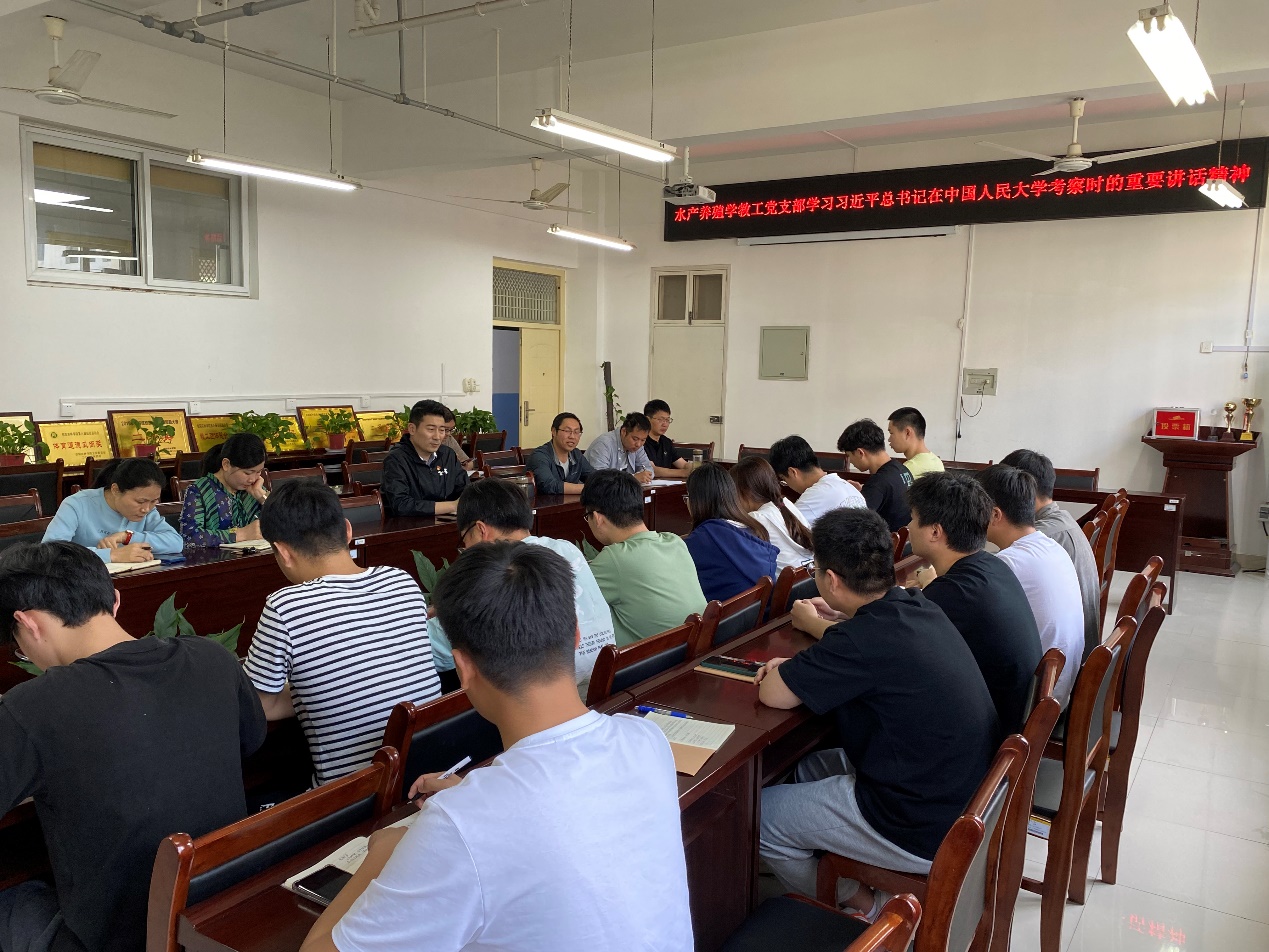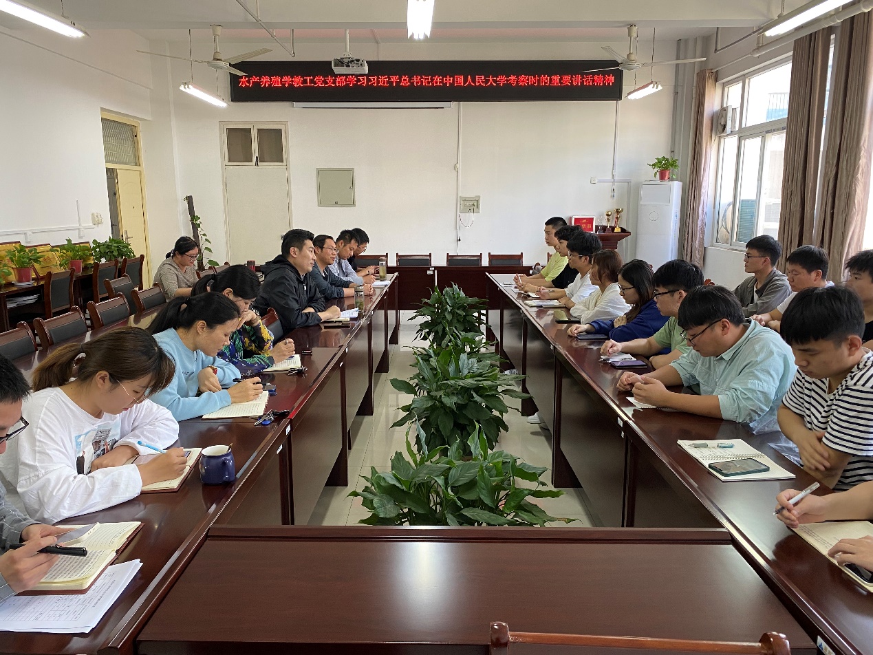 2022年4月25日“五四青年节”前夕,习近平总书记到中国人民大学考察,并深情寄语广大青年。为深入学习习近平总书记的重要讲话精神,水产养殖学教工党支部于2022年5月3日在学院会议室召开支部党员大会,并邀请水产养殖学专业学生党员代表共同开展习近平总书记在中国人民大学考察时的重要讲话精神学习研讨活动。本次会议由支部书记冯德祥主持。
