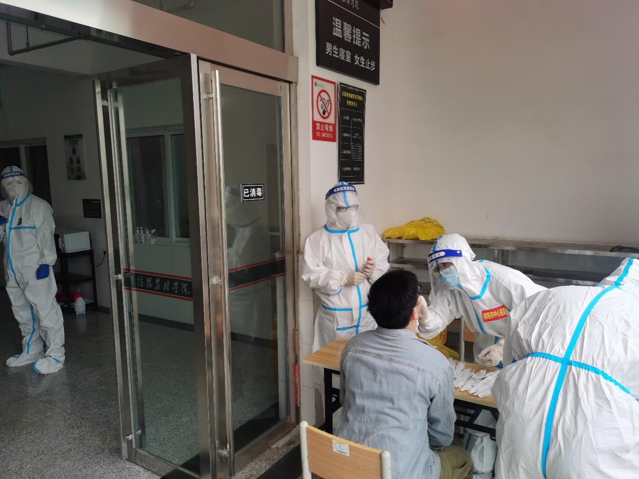 5月11日,水产养殖学教工党支部党员冯德祥、苏超群、伦峰、入党积极分子姜汉军全程参与20号学生宿舍楼核酸信息采集、维持秩序、志愿引导等工作,各司其职,相互配合,共同顺利圆满完成本次核酸检测志愿工作,用实际行动将党旗插在疫情防控最前线。