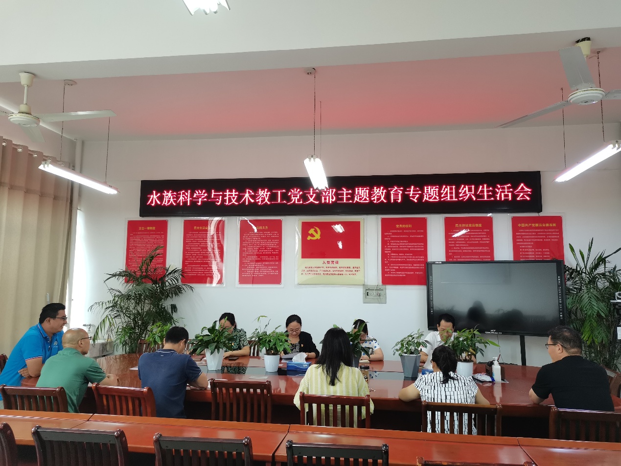 组织生活会召开前,水族科学与技术教工党支部再次集中学习了习近平总书记关于以学铸魂、以学增智、以学正风、以学促干的重要论述、习近平总书记关于加快建设教育强国的重要论述和《严肃党内政治生活推进全面从严治党》等,剖析了主题教育组织生活会“反面典型案例”,进一步统一思想、深化认识,为开好专题组织生活会打牢思想基础。会上,孟瑾同志代表支部班子对照《中共中央关于在全党深入开展学习贯彻习近平新时代中国特色社会主义思想主题教育的意见》明确的理论学习、政治素质、能力本领、担当作为、工作作风、廉洁自律等6个方面的突出问题,特别是对照习近平总书记关于以学铸魂、以学增智、以学正风、以学促干的12条具体要求,认真开展对照检查,剖析了典型案例及问题存在的根源,并制定整改措施。随后,支部党员联系实际逐一进行对照检查发言,开展了深刻的批评与自我批评。