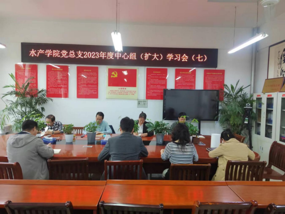 9月26日下午,水产学院党总支在2C330党员活动室召开2023年度第七次中心组(扩大)学习会,会议由水产学院党总支书记、院长郭旭升同志主持,学院党总支成员和各党支部书记参加会议。