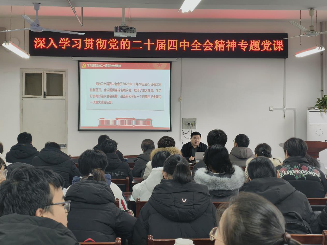 宣讲会上,雷振山围绕党的二十届四中全会取得的重大成果、做出的重大部署,从党的二十届四中全会是在即将进入基本实现社会主义现代化夯实基础、全面发力的关键时期召开的一次十分重要的会议,准确把握“十五五”时期在基本实现社会主义现代化进程中的重要地位,深刻领会“十五五”时期经济社会发展的指导方针和主要目标,全面理解“十五五”时期经济社会发展的战略任务和重大举措等四个方面进行了全面、系统、深入的解读。宣讲报告主题鲜明、内涵丰富、逻辑严密,既有理论高度,又有实践深度,对于学院师生准确把握全会精神、科学谋划未来发展具有重要的指导意义。
