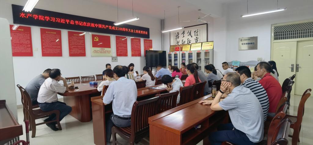 7月6日下午,水产学院在2C330党员活动室召开政治理论集中学习会,集中学习了习近平总书记在庆祝中国共产党成立100周年大会上的重要讲话。水产学院全体教职工参加了会议。会议由水产学院党总支书记、院长郭旭升主持。