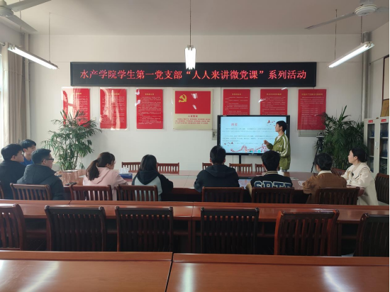 上党课是对党员进行经常性教育的重要手段。“人人来讲微党课”系列活动要求支部全体党员人人来当主讲人,以讲促学,先学后讲,从“听课人”变成“讲课人”,激发学习内生动力,引导学生党员进一步强党性、感党恩、听党话、跟党走,真正做到在党言党、在党爱党、在党护党。水产学院学生第一党支部将从今年开始,将“人人来讲微党课”系列活动作为一项强化党员日常教育有效举措,未来将在坚持中加强、在加强中深化,逐步培育成为基层党支部党建品牌。