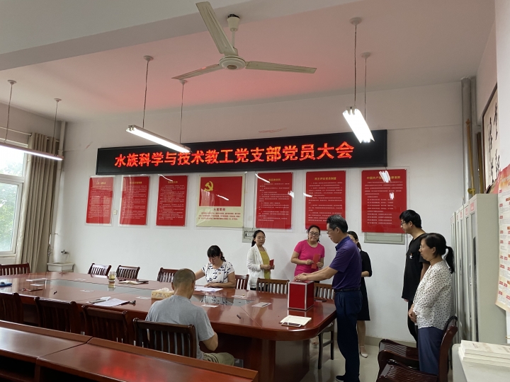 根据《中国共产党章程》及《中国共产党基层组织选举工作暂行条例》有关规定,并报校党委同意,党委组织部批准,7月14日上午,水产学院水族科学与技术教工党支部召开党员大会,选举产生水族科学与技术教工党支部委员会。会议由水产学院党总支副书记黄光玲主持。