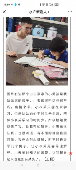 新冠肺炎疫情至今,我们经历了很多,也见证了很多,全民战“疫”,共克时艰。医护人员、人民警察、党员干部,还有自告奋勇加入战“疫”的各行各业的志愿者们,他们为人民守护,担时代责任。那么作为学生党员,如何积极为社会做出力所能及的贡献?怎样真正在大考中实现青春价值?水产学院学生党支部为充分发挥大学生党员先锋模范作用,担当共产党员的职责使命,彰显服务本色,号召学生党员们行动起来,主动为自己生活、实习所在村里的贫困学生和留守儿童辅导作业,同时关注孩子们心理健康,给他们带去关心和欢笑。