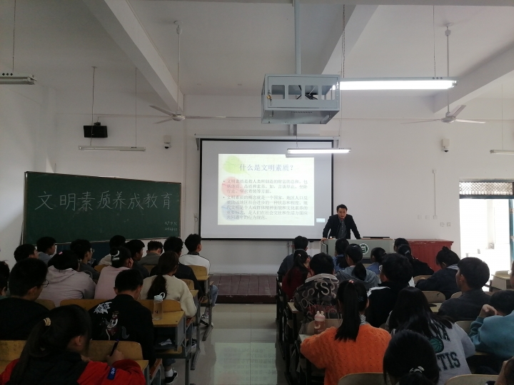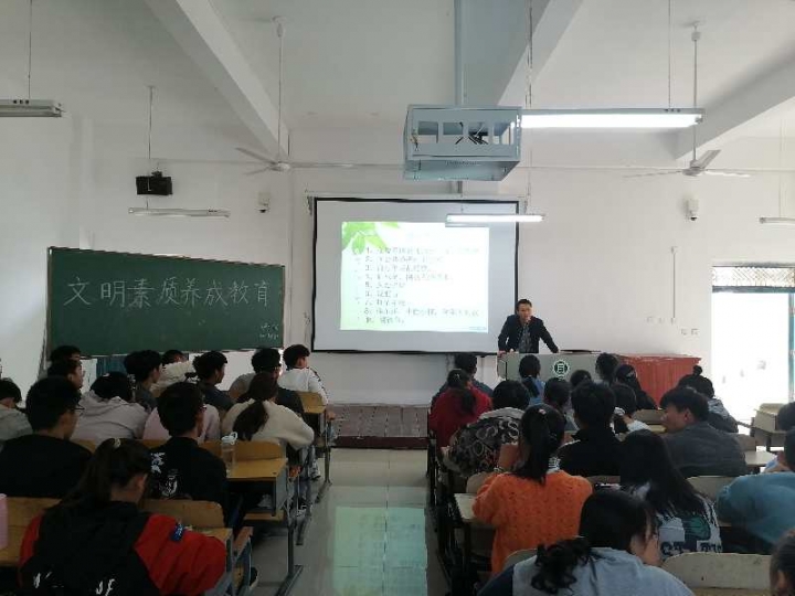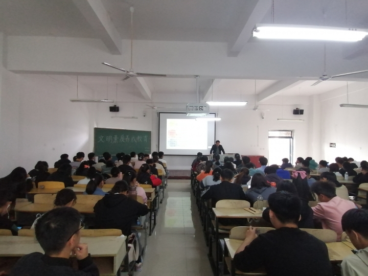 刘老师,首先向大家讲解什么是文明素质,以及提升文明素质对社会的重要性;然后向大家讲解大学生应具备的文明素质,及大学校园内有哪些常见的不文明现象。结合校园实际情况分别从教室、宿舍、食堂以及校园四个方面展示存在的不文明现象,倡导大家要注意自己的行为举止,提升自身的同时也要监督他人,共同营造一个和谐文明的校园。
