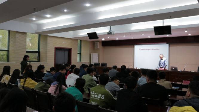 杨家新教授从轮虫的典型特征、轮虫的咀嚼器种类、轮虫繁殖、轮虫作为开口饵料的重要意义、轮虫生物饵料的规模化生产等方面做了阐述,从独特的角度阐述了轮虫在水产生物饵料中的重要意义。报告结束后,杨家新教授与在场师生进行了深入交流与互动,对师生提出的问题进行了详细地解答;并对几位博士老师申请国家自然基金项目的方向给予了建设性建议。