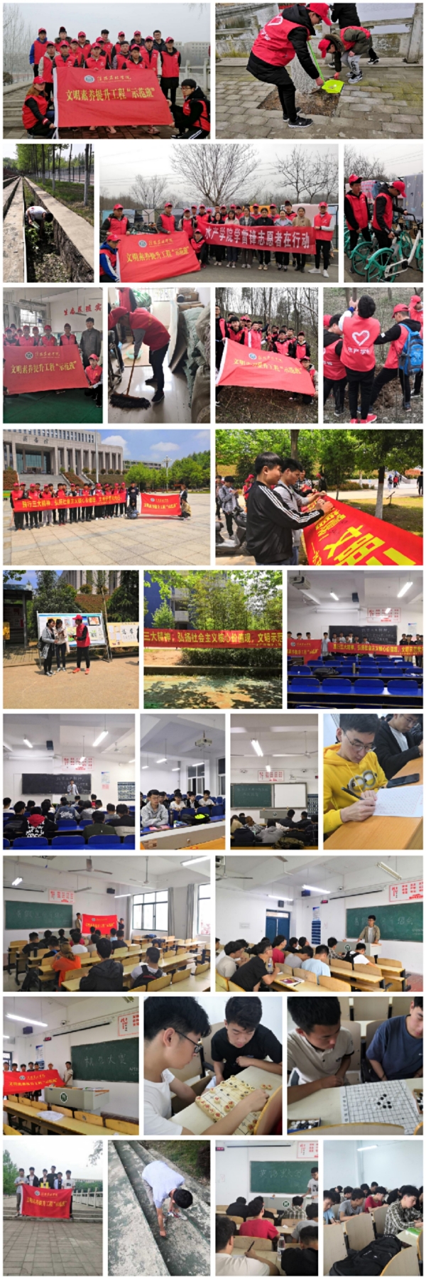 为进一步提升beat365在线平台官网大学生文明素养,创建文明和谐大美校园,水产学院文明素养提升工程示范班在本学期积极开展“拾垃圾,清沟壑,创建美丽校园”、“整理共享单车、捡拾垃圾杂物”、“社会主义核心价值观月系列活动之签字活动”等多项文明示范活动。