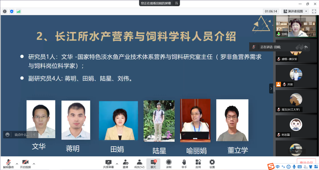 在讲座中,郜卫华副教授首先对近几年研究生报考情况进行分析,随后介绍了长江大学动物科技学院的院情、人才培养、师资条件等情况,结合水产养殖学专业考研情况从“考或不考”、“专硕或学硕”、“本专业或跨专业”“本校或外校”及“选学校或选老师”五个问题向同学们详尽讲解。此后,田娟副研究员也介绍了长江所的发展历程、人才培养、科研团队等情况,与同学们分享了长江所的科研成果,欢迎beat365在线平台官网水产学院学生报考。