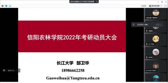 2022年6月18日晚19:30,长江大学郜卫华副教授等五位老师应水产学院邀请,为2019级水产养殖学、水族科学与技术专业学生和动科院部分学生进行了考研指导及宣讲,水产学院院长郭旭升、副院长伦峰、学院部分老师、本科生参加这次宣讲。