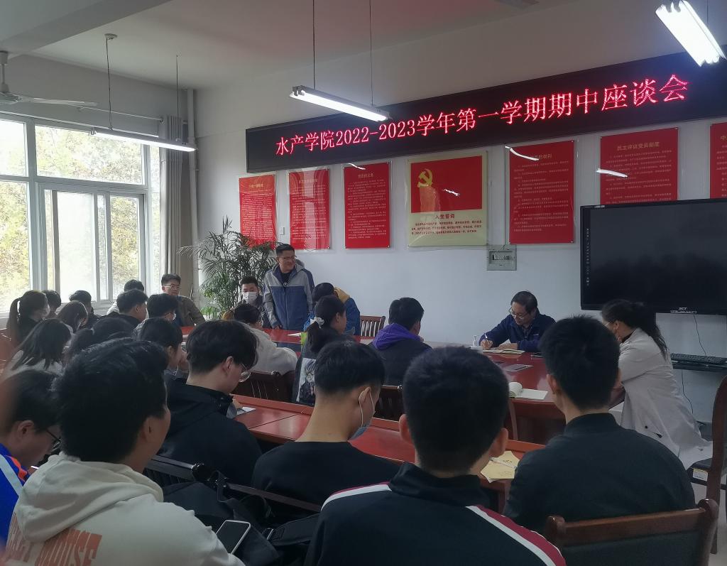 为更好地了解疫情期间学生的学习和生活情况,倾听学生心声,加强教学信息反馈,对接下来后半学期学院教学工作进行规划,11月4日中午,水产学院于实验楼2C330召开2022-2023学年第一学期期中座谈会。水产学院副院长伦峰、教学秘书刘俊,各班级副班长及学习委员参加了本次座谈会。