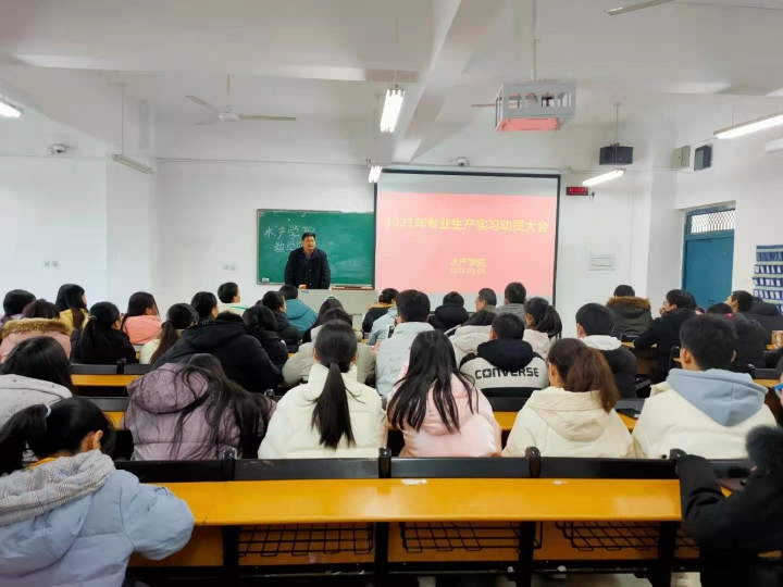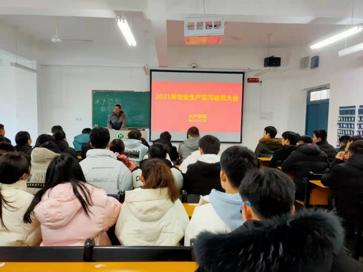 最后,杨院长做了实习动员总结讲话,并着重强调了以下几点:一要牢记我院“厚重、诚信、坚韧、务实”的水产专业精神,扎扎实实深入企业生产中,在实践中锤炼专业技能和素质;二要端正实习态度,积极主动适应实习单位要求;三要有集体荣誉感,互帮互助,树立水产学子的良好形象;四要密切关注疫情形势,及时掌握国内疫情动态,树牢疫情防控意识。