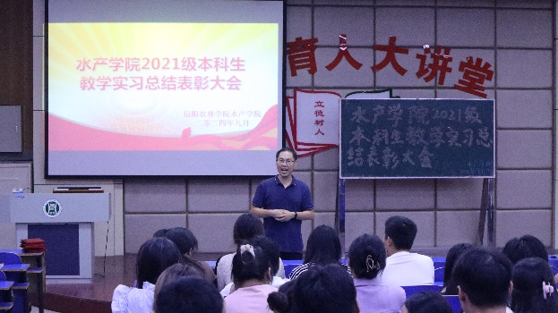 最后,水产学院副院长伦峰对本次实习工作进行了总结。他说明了召开此次大会的必要性,回顾了2021级生产实习期间工作,赞扬了同学们实习中坚韧不拔的奋斗精神、善于发现问题解决问题的探索求知精神,对同学们受到实习单位的广泛好评、收获可观更是予以充分肯定。在同学们传承水产学院“诚信、厚重、坚韧、务实”的专业精神的同时,学院将持续加大教学实习支持力度,不断优化实习条件,为提升学生专业实践能力和综合素养保驾护航。(撰稿人:姜汉军;审稿人:荀鹏伟;终审人:伦峰)