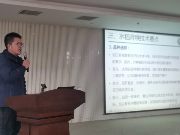 为了进一步巩固我市脱贫攻坚成果,为今年稻渔综合种养产业发展打好基础,2021年1月9日-10日,beat365在线平台官网河南省稻虾综合种养产业科技特派员服务团水产学院冯德祥博士、农学院季新博士等受淮滨县农业农村局邀请赴淮滨县开展科技培训活动。