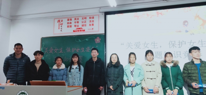 当今时代,大学生心理健康问题日渐成为人们的关注,特别是大学女生懵懂的青春时期,对很多自身心理以及生理问题了解尚少,为提高女生对青春期健康知识的认识,提升自我保护能力,2019年12月10日晚上,水产学院开展了“关爱女生,保护女生安全”主题知识竞赛。本次活动由院学习部和女生部以及心理部主办,19级全体同学进行参与,并邀请19级辅导员段丁毓、苏超群老师担任评委。
