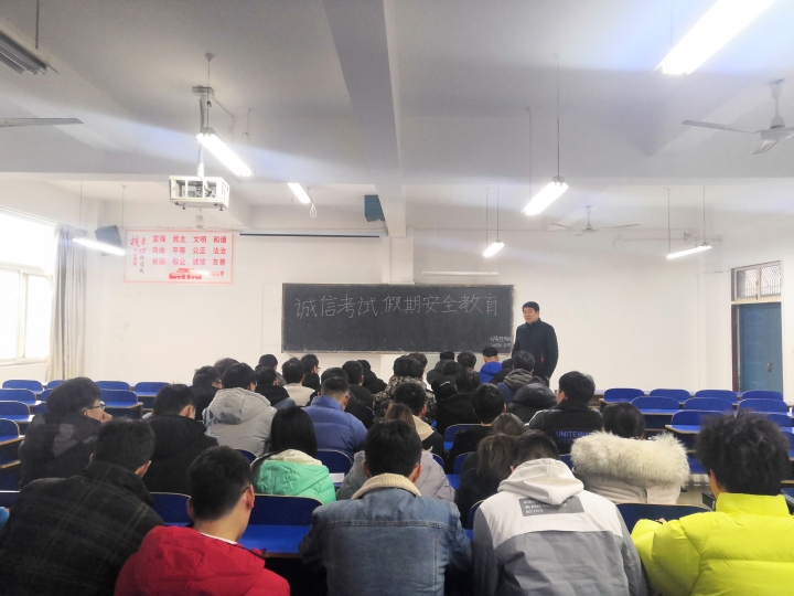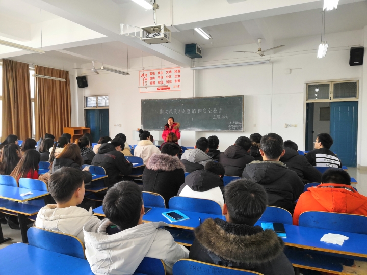 假期安全教育方面,辅导员对人身安全、财产安全、交通安全、宿舍安全以及假期出行、打工等进行了讲解,要求同学们提高安全意识,远离安全隐患。假期不组织或参与外出打工;回家乘坐正规渠道车辆,最好结伴而行,并随时将行程告诉父母;离校前关好门窗、水、电,贵重物品不要留在寝室;假期里自觉远离传销陷阱、邪教组织。同时对下学期返校事宜进行了相关安排布置,提醒学生合理规划时间,按时返校。此外,老师鼓励同学们在寒假期间阅读有益书籍,积累知识,开阔眼界。(段丁毓)