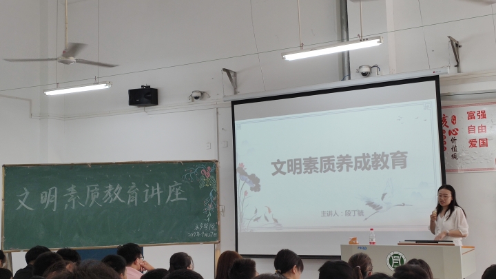 9月27日下午2时,水产学院19级辅导员段丁毓在二教404为2019级新生进行了文明素质养成教育讲座。