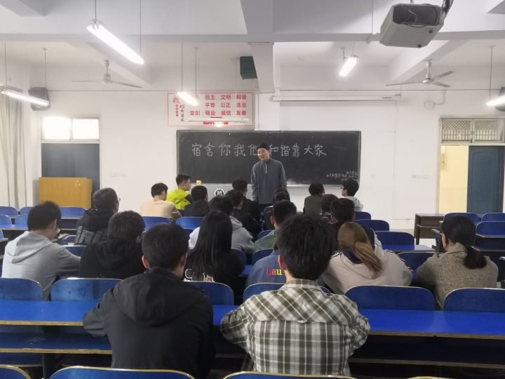 无论是任何一种关系,在人与人之间交流和相处时,和谐是作为关系维持的前提保障。同学们来自五湖四海,有着不一样的家庭环境,不同区域性的文化差异,可能会发生着或存在着各种矛盾,需要同学们进行协调和磨合。各位辅导员在班会上讲述和谐宿舍的重要性。每个班宿舍长代表进行了发言,从宿舍内的卫生、宿舍安全、宿舍团结、宿舍间室友关系以及发生矛盾等各个方面,讲述了同学们的寝室生活并发表了看法和意见。