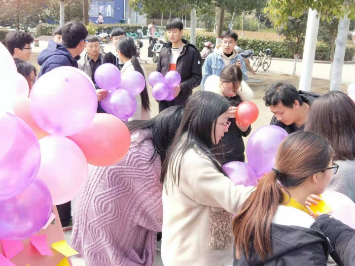 这次女生节系列活动中的“祝福板”、“心愿球”最让人印象深刻。活动期间,女生可以将自己的愿望写在便签纸上,贴在“祝福板”上,于是,女生们纷纷在心愿贴上写下自己的心愿,有的是“希望脱单”,有的是“希望收到生日祝福”还有的是“能过四六级”等等五花八门的愿望。也有的是写下对朋友和对家人的祝福,和对新年的期待。水产学院老师与学生一起,也写下了自己的心愿,与学生一起度过一个愉快的女生节,当然,某些对学校男生的调侃的趣味心愿也成为了大家的笑谈。同学们在路过心愿墙的时候都不忘驻足停留一番,或写下,或取走,也都留下一路的欢声笑语。一时间,心愿墙上各种各样的心愿都贴了出来,也成为春日偌大的不可多得的一道明媚的风景线,