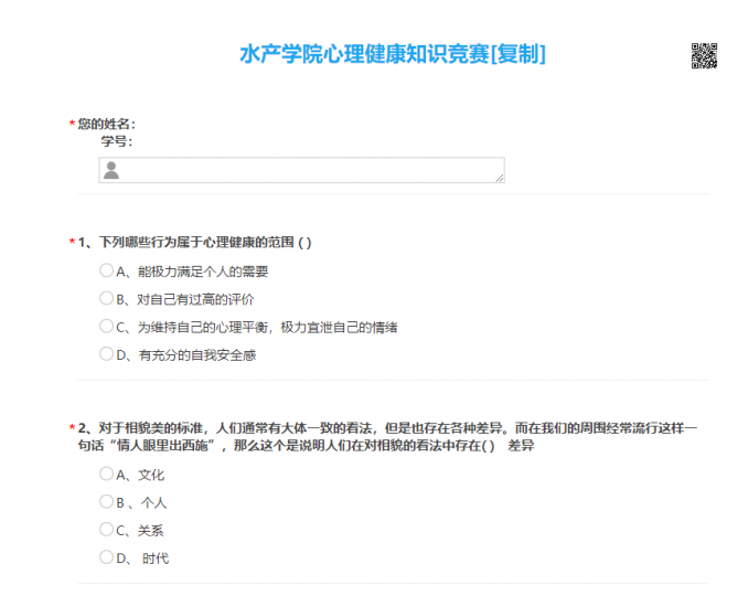 为了增强大学生的心理健康知识,引导学生关注心理健康,形成正确的心理健康理念,水产学院利用新媒体新技术,精心制作了在线答题心理健康知识竞赛。