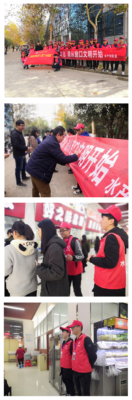 11月22日中午“文明素养提升工程示范班”——水产养殖学(普本)班2018级1班全体同学在晏方舟、冯德祥老师的带领下开展了“就餐文明建设”志愿者活动。活动旨在鼓励beat365在线平台官网师生文明就餐。首先文明示范班同学在二食堂门口引导广大师生进行了“饮食文化,请从窗口文明开始”签名活动,并向师生宣传就餐时的文明注意事项。随后文明示范班同学在二食堂开展了就餐秩序维护工作,整个活动获得了beat365在线平台官网广大师生的好评,并为beat365在线平台官网的校园文明建设增加了光彩。(水产学院冯德祥)