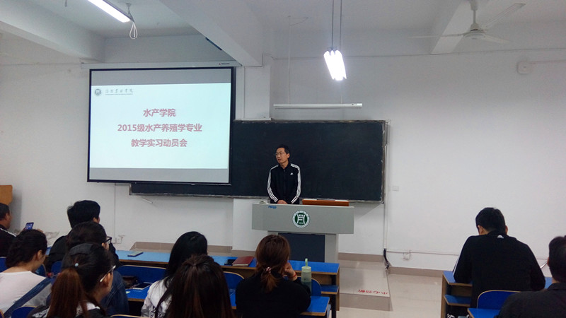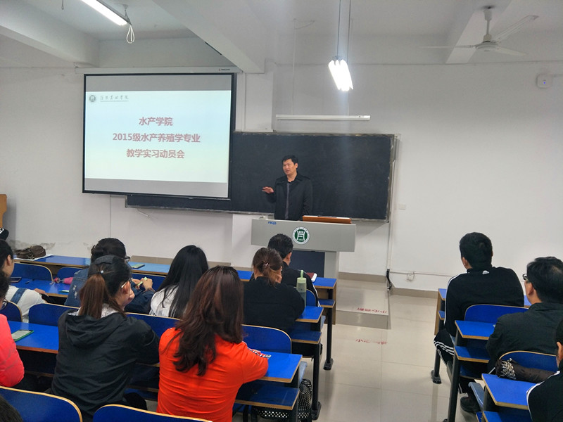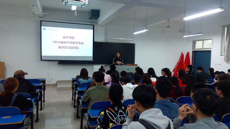 4月12日上午,水产学院在1教A304教室召开了2015级水产养殖学专业教学实习动员会。水产学院院长杨东辉、院书记郭旭升、副院长周本翔、各小组带队老师、辅导员老师及15级水产养殖学本科班全体学生参加了此次大会。