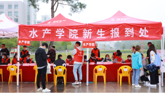 10月8日,水产学院在汝宁广场喜迎2021级水产新生报到。水产学院全体师生在迎新报到处迎接新同学的到来。学校党委书记余作斌、校长邢勇、副校长王万玲等到迎新现场指导工作。
